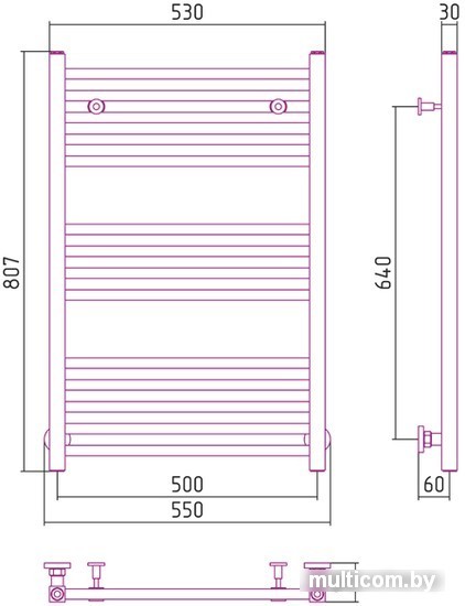 | Посадочное (межосевое) расстояние | 500 мм (- при нижнем подключении) |