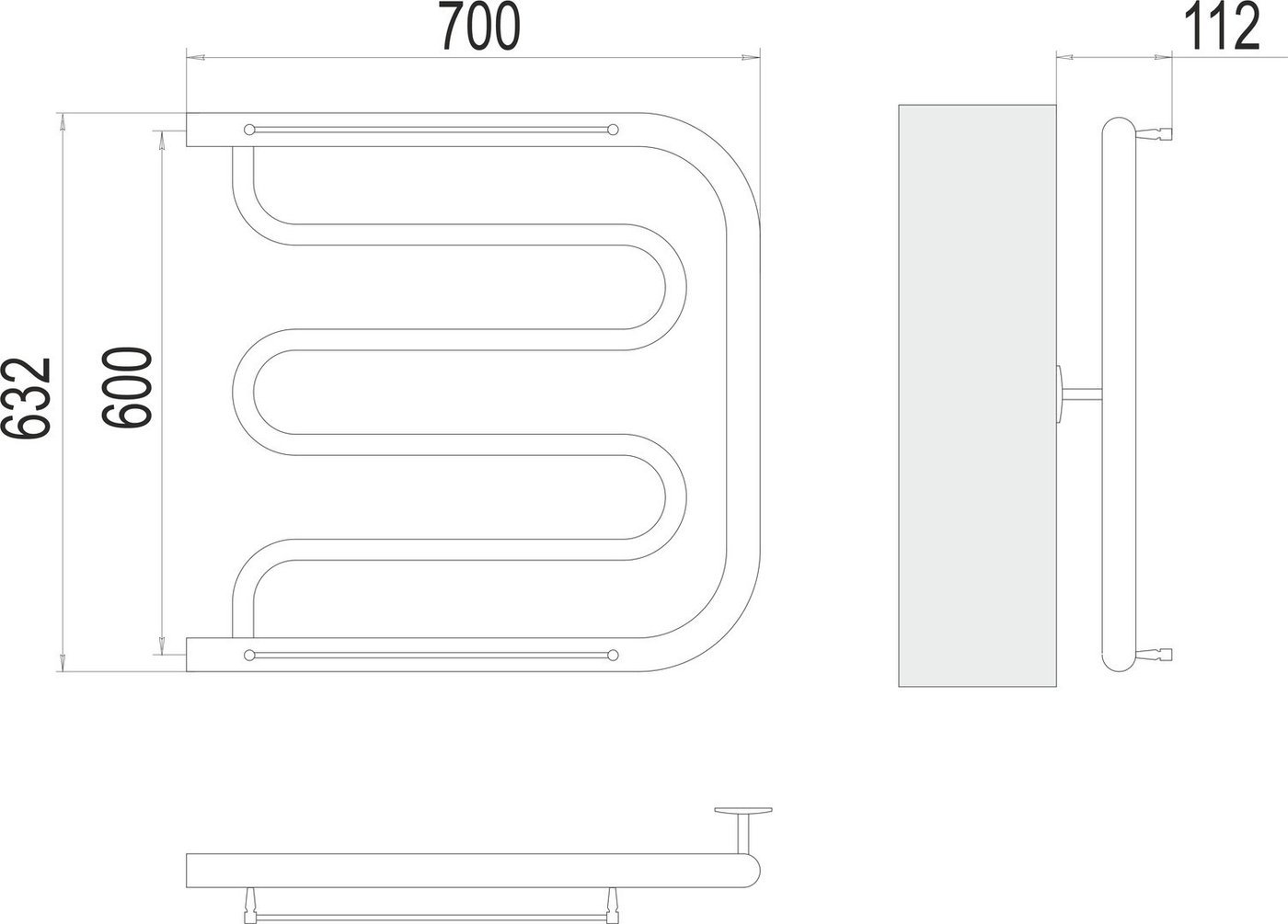 | Комплектация | крепление телескопическое (1 шт.); паспорт (1 шт.); упаковка (1 шт.); полотенцесушитель |