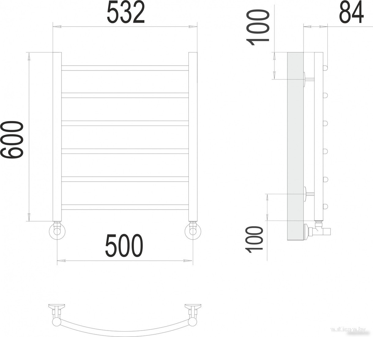 | Информация | ? Полотенцесушитель TERMINUS Классик П6 500x600 нп - водяной тип полотенцесушителя с нижним подключением и формой лесенки. ? Он имеет 6 перекладин, равноудаленную группировку и размеры 600 мм в высоту и 532 мм в ширину, с межосевым расстоянием 500 мм. ? Теплоотдача составляет 198 Вт, рабочее давление 3-15 Атмосфер, а давление испытаний 20 Атмосфер. ? Комплектация включает в себя телескопические держатели к стене, кран Маевского, заглушку и паспорт изделия. |