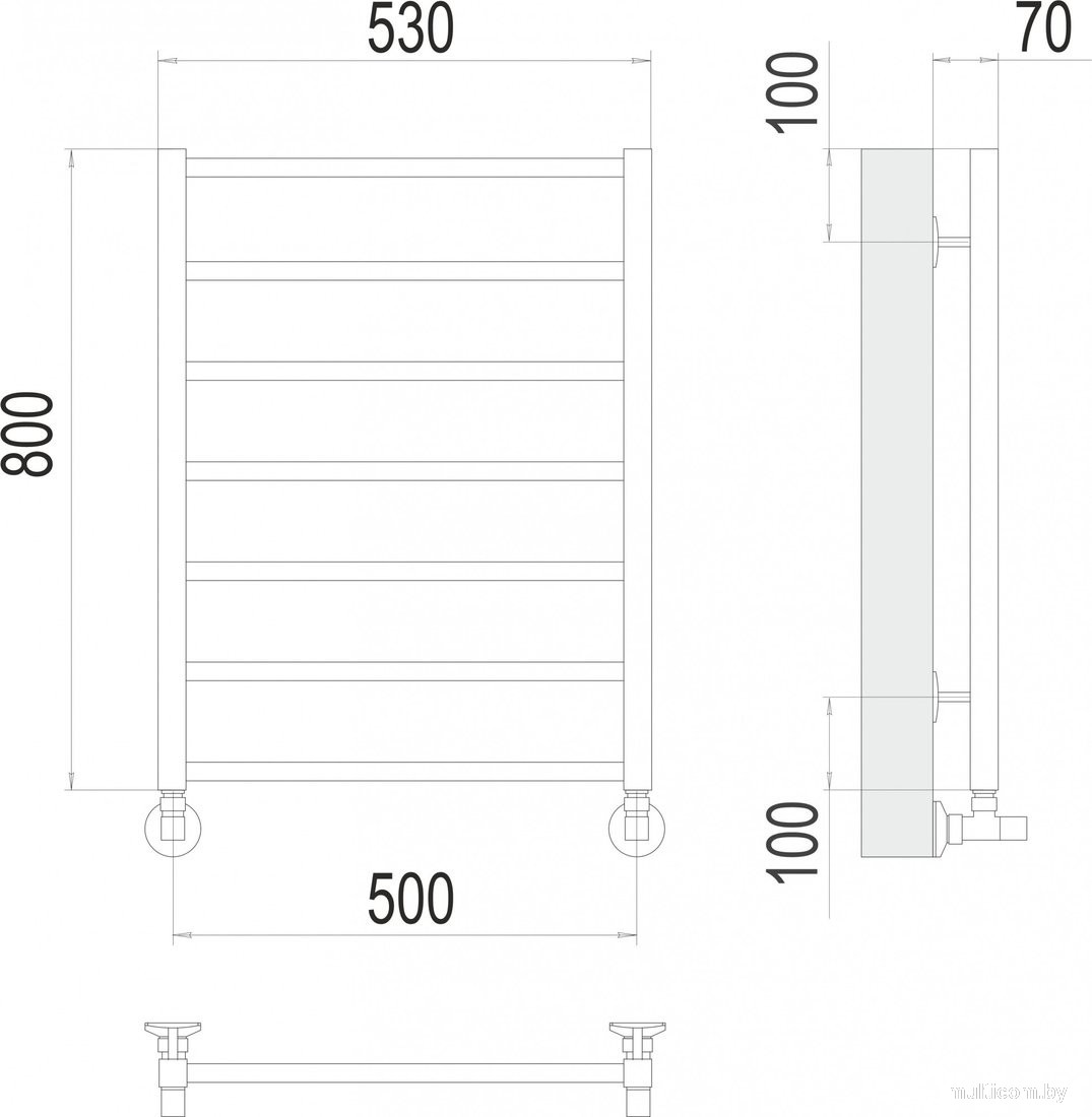 | Комплектация | заглушка (1 шт.); кран Маевского (1 шт.); крепление телескопическое (4 шт.); полотенцесушитель |