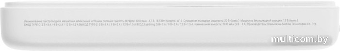 | Информация | ??Текст описания составлен при помощи искусственного интеллекта. ? Внешний аккумулятор Solove W12 5000мAч - это портативное зарядное устройство с быстрой зарядкой и выходным разъёмом USB Type-C. ? С его помощью вы сможете заряжать смартфоны, умные часы, наушники и портативные колонки. ? Аккумулятор имеет выходную мощность 20 Вт и выходное напряжение 5V, 9V, 12V, что позволяет быстро заряжать устройства. ? Толщина аккумулятора составляет 14.2 мм, а его ширина - 96 мм, что делает его компактным и удобным для переноски. ? Кроме того, он поддерживает беспроводную зарядку по стандарту Qi, что делает его ещё более удобным в использовании. ? Входной разъём аккумулятора поддерживает как Lightning, так и USB Type-C, а его максимальный входной ток составляет 3 000 мА. ? Внешний аккумулятор Solove W12 5000мAч - отличный выбор для тех, кто ценит удобство и быструю зарядку своих устройств. |