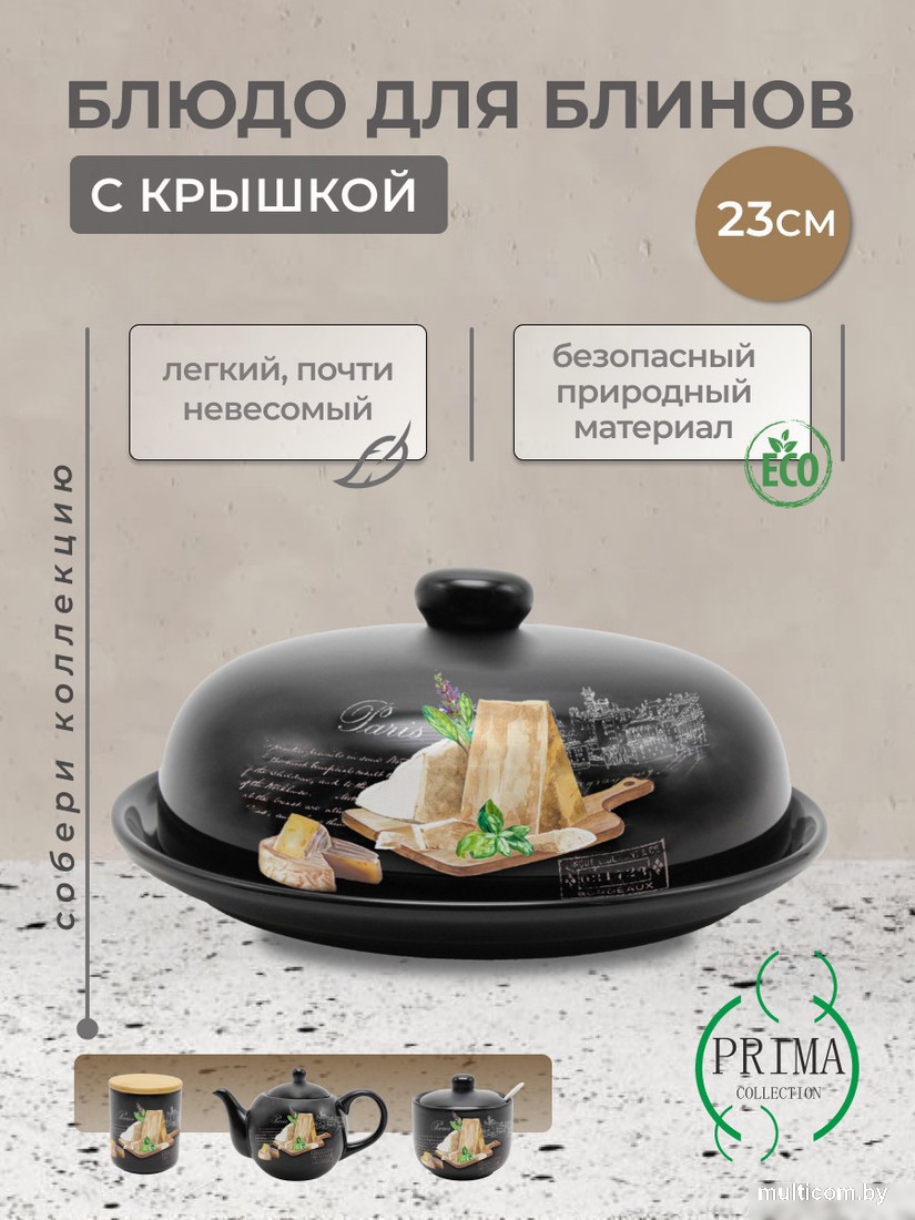 | Информация | - Емкость для хранения выпечки Prima Collection Черный трюфель PC73BT23 предназначена для сохранения температуры блинов перед подачей на стол. Крышка плотно закрывает блюдо, обеспечивая сохранность продукта и защищая его от попадания влаги. Ручка крышки удобна в использовании и легко открывается. Поверхность изделия гладкая и легко моется, а благодаря своей легкости, оно быстро сохнет и не впитывает запахи. Изделие станет прекрасным элементом декора для любой кухни и порадует любителей стильной посуды. Красочная индивидуальная упаковка будет идеальным подарком на праздник. Нельзя использовать в СВЧ. |
