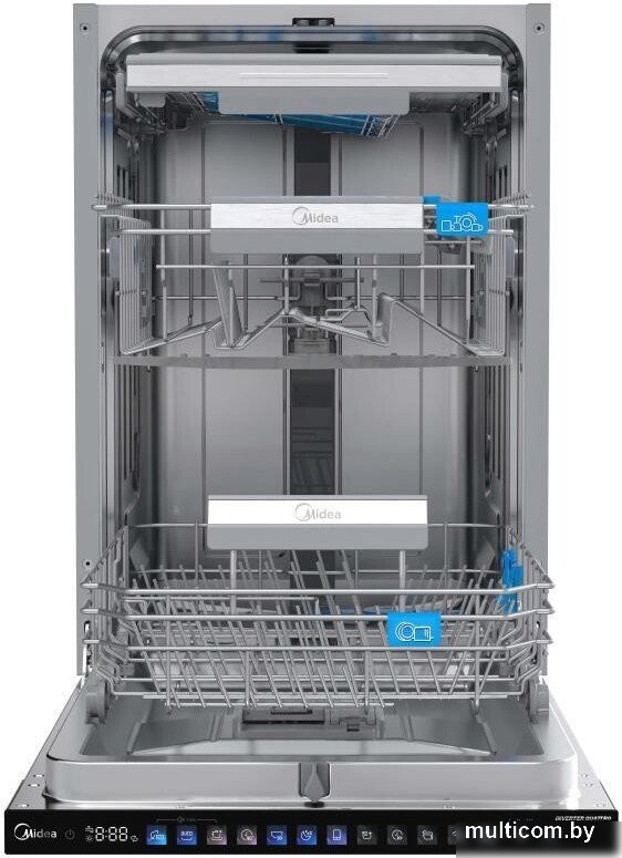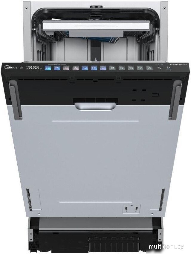| Информация | -Встраиваемая посудомоечная машина Midea MID45S730i сочетает в себе современные технологии и функциональность для эффективной мойки посуды в домашних условиях. Узкая конструкция позволяет экономить пространство на кухне, при этом вместимость рассчитана на 10 комплектов посуды, что делает модель подходящей для семей среднего размера. -Модель оснащена конденсационной сушкой с автоматическим открыванием двери по окончании цикла, что способствует более быстрому и качественному высыханию посуды. Наличие третьего короба для столовых приборов увеличивает удобство загрузки, а регулировка высоты корзины обеспечивает гибкость размещения различной посуды. -Для безопасности предусмотрена система защиты от протечек. Экономичный расход воды – всего 8 литров за цикл – и инверторный двигатель обеспечивают тихую работу (уровень шума 42 дБ) и долговечность эксплуатации. Внутренняя камера выполнена из нержавеющей стали, что гарантирует гигиеничность и износостойкость. -Посудомойка располагает 10 программами мойки, включая автоматическую, интенсивную, экономичную и деликатную для стекла, а также опциями сокращения времени и половинной загрузки. Управление электронное, предусмотрены светодиодная индикация, таймер отложенного старта, звуковой сигнал, блокировка от детей и индикаторы отсутствия соли и ополаскивателя. |