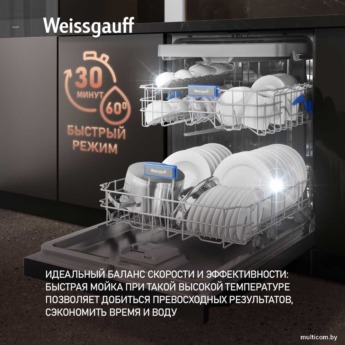| Информация | - Полноразмерная отдельностоящая посудомоечная машина Weissgauff c корпусом, выполненным в чёрном цвете, вместимостью 15 комплектов, а также инновационный цветной дисплей SMART SCREEN с сенсорным управлением, что делает данную модель не только эффективной, но и по-настоящему удобной в работе - это одна из наиболее передовых моделей среди посудомоечных машин Weissgauff! - Цветной дисплей SMART SCREEN с сенсорным управлением отражает всю современность и технологичность подходов Weissgauff к созданию своих устройств, делая процесс взаимодействия с данной моделью ещё более простым и удобным! С легкостью выбирайте любую программу и функцию точно также, как вы это делаете на планшетном компьютере или смартфоне! - До 15 комплектов посуды одновременно вы можете расположить в данной посудомоечной машине, благодаря современным продуманным и эргономичным корзинам, которыми Weissgauff оснастили эту модель. - Три корзины, позволяющие разместить отдельно от остальной посуды в верхнем лотке сразу все ложки, вилки и ножи, обеспечивая при этом их наилучшее мытьё! - Быстрая мойка, при 60°C позволит вам управиться еще оперативнее: за минимальное время машина проведет мойку и ополаскивание. Данный режим идеально экономит ваше время и подходит для той посуды, которая не требует сушки. - Интенсивная программа великолепно расправится даже с самыми сложными загрязнениями, гарантируя великолепный результат после каждого запуска. - Гигиена - это специальная программа стерилизации, повышающая температуру воды до 70°С и устраняющая большинство вредоносных бактерий! - Режим "Стекло", прекрасно подойдет для стеклянных стаканов, тарелок, бокалов, фужеров и прочего, обеспечивая одновременно бережное обращение с помещённой посудой и отсутствие разводов на стекле после завершения цикла мойки! - Экономичная программа подойдет для тех, кто хочет помыть посуду с низким уровнем загрязнений, не расходуя при этом излишне много воды! - Стандартная программа подойдет для посуды среднего уровня загрязненности, в том числе, кастрюль, тарелок и бокалов. - Выбор уровня мойки является доработанной функцией половинной загрузки с возможностью выбора верхней или нижней части камеры, благодаря которой вы сможете помыть даже самое небольшое количество посуды, не расходуя воду и электричество больше, чем это необходимо. - Дополнительная сушка даст возможность добавить еще один этап просушивания по завершении основного цикла. Благодаря этому, ваша посуда будет не только чистой, но и невероятно сухой. - Половинная загрузка, благодаря которой вы сможете помыть даже самое небольшое количество посуды, не расходуя воду и электричество больше, чем это необходимо. - Самоочистка обеспечит эффективный уход за посудомоечной машиной, продлевая срок ее службы и сохраняя ваше время для более важных дел! - Съемная верхняя крышка - позволяет также |