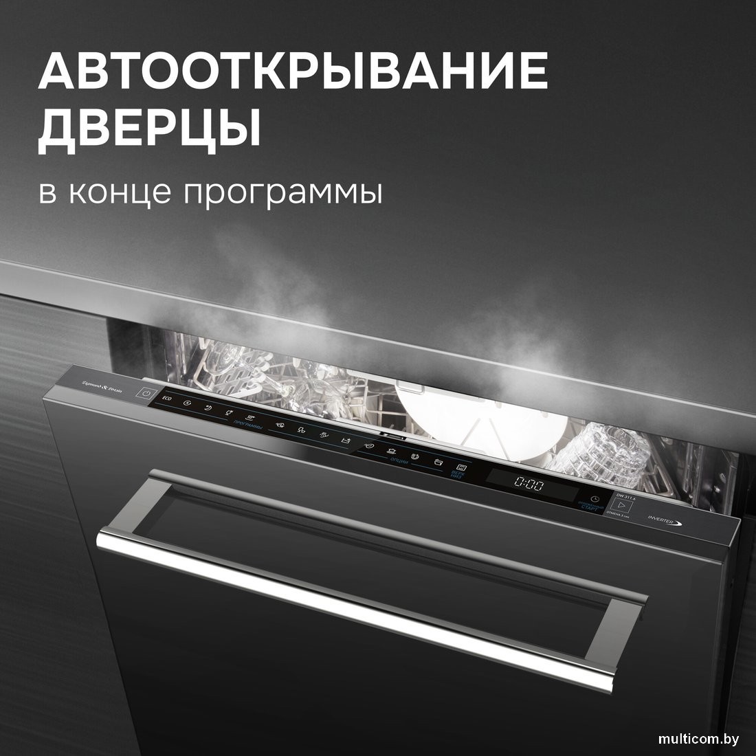| Информация | -Посудомоечная машина Zigmund & Shtain DW 311.6 – это современное решение для вашей кухни, способное вместить до 14 комплектов посуды и обеспечить качественное мытье даже при полной загрузке. Модель оснащена инверторным мотором, что делает её работу более тихой (44 дБ) и продлевает срок службы устройства. -Сенсорное управление с интуитивной индикацией упрощает настройку программ. После завершения мытья дверца автоматически приоткрывается для ускоренной и качественной сушки, а функция отложенного старта до 24 часов позволяет запускать машину в удобное для вас время. -Три разбрызгивателя обеспечивают эффективную очистку, а верхняя корзина трансформируется и регулируется по высоте для оптимального размещения посуды. Среди 9 программ есть автоматическая, деликатная, быстрая, интенсивная, экономичная, ночная, самоочистка и другие, включая функции экспресс-мытья, дополнительной сушки и половинной загрузки. -Система Aqua-Stop защищает от протечек, а индикация на полу показывает оставшееся время до конца цикла. Машина оснащена датчиком чистоты воды, блокировкой от детей и широким набором индикаторов, что делает её удобной и безопасной в эксплуатации. |