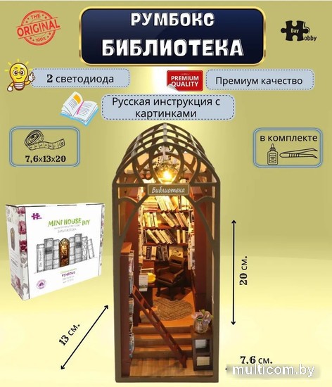 | Информация | ? Румбокс "Серия книжный румбокс: Библиотека" от официального дистрибьютора Hobby Day. Товар полностью русифицирован. ? Интерьерный конструктор "Серия книжный румбокс: Библиотека" - это готовый набор для творчества, внутри которого вы найдете все необходимое, чтобы воссоздать собственными руками кукольный интерьер в миниатюре. Все детали и элементы невероятно реалистичны, а собранный румбокс непременно вызывает восторг! Румбокс, станет прекрасным подарком для всех любителей интерьерных конструкторов. ? Только румбоксы от компании Hobby Day упакованы в яркую, подарочную упаковку с нанесением логотипа. Hobby Day - это русифицированный продукт, с гарантией и сертификатом качества. Приобретайте официальные товары, остерегайтесь подделок! |