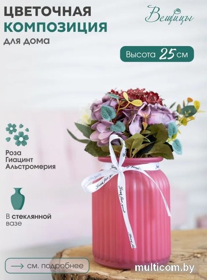 | Информация | ? Искусственный букет Вещицы Фантазия 105x105x250 Fancy86 (розовый) представляет собой букет высотой 25 см. ? Он имеет размеры 105x105x250 мм. ? Этот розовый букет идеально подходит для создания уютной атмосферы в доме или офисе. ? Составлен из высококачественных материалов, он будет радовать вас своей красотой и свежестью на протяжении долгого времени. |