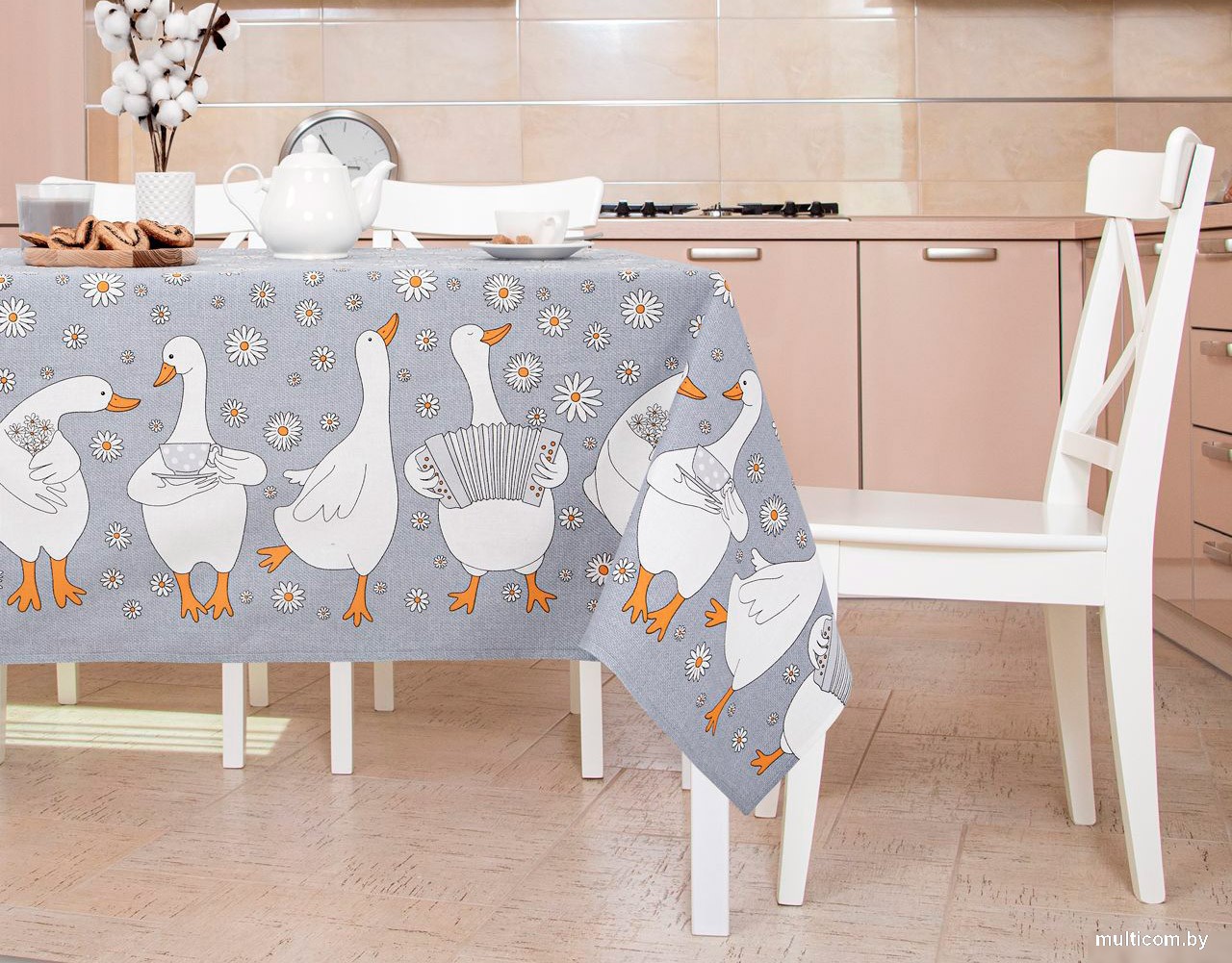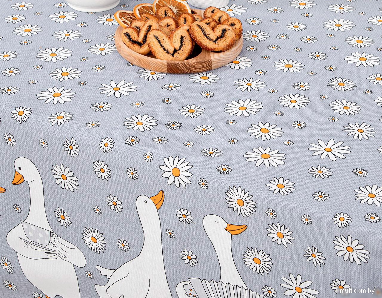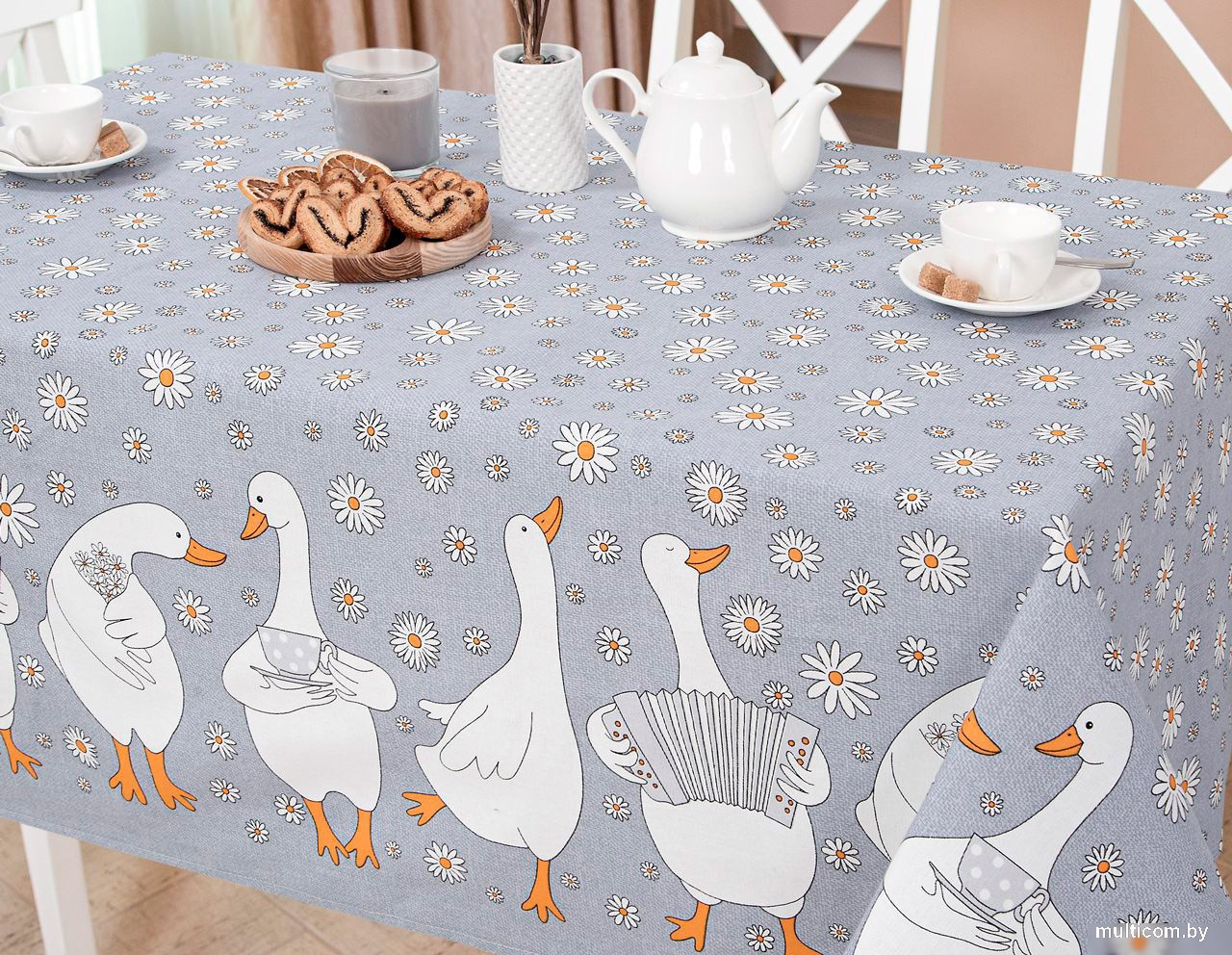 | Информация | - Скатерть "Ромашки" из рогожки с летним колоритом. - На рисунке изображены полевые цветы и веселые гуси. - Гуси играют на гармошке, собирают ромашки и пьют чай. - Все персонажи очаровательные и забавные. - Авторская композиция создает летнее настроение и уют. - Скатерть с гусями - отличный подарок для оформления кухни. |