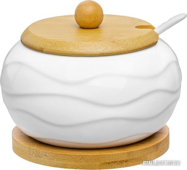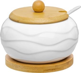 | Информация | Сахарница серии «Айсберг волны» объемом 310 мл с крышкой, подставкой и ложкой подойдет для хранения и красивой подачи сахара, варенья, меда и других продуктов. Сахарница и ложка выполнены из высококачественного фарфора, а крышка и подставка - из натурального бамбука. Подходит для использования в микроволновой печи и посудомоечной машине. Поставляется в яркой картонной упаковке. Сахарница из серии посуды «Айсберг волны» сможет стать настоящим украшением кухни или приятным подарком для ваших родных и близких! |