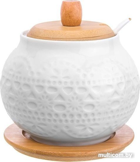 | Информация | Сахарница из серии «Белое кружево» объемом 620 мл с деревянной крышкой, фарфоровой ложкой и деревянной подставкой выполнена из высококачественного фарфора и натурального бамбука. Приятное цветовое решение, изящный рельефный рисунок на фарфоре и удобство использования делают эту сахарницу желанным подарком любой хозяйке. В серии фарфоровой посуды с использованием бамбука представлен широкий ассортимент товаров для сервировки стола, которые, несомненно, впишутся в любой интерьер благодаря лаконичному дизайну, натуральным материалам и высокой функциональности. |