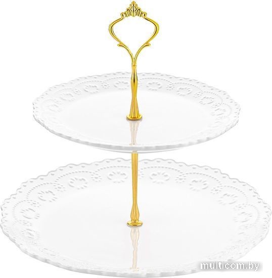 | Информация | Этажерка сможет стать настоящим украшением стола. Двухъярусная фруктовница поможет в украшении фуршета или кухни. Подойдет для сервировки закусок, овощей, орехов, фруктов, пирожных, капкейков, конфет и других десертов и сладостей. Тарелки выполнены из высококачественного белого фарфора и украшены декоративными рельефными узорами. Держатель выполнен из металла. Многоярусная подставка не подходит для ПММ. Кухонная фарфоровая этажерка из серии посуды "Белый узор" сможет стать настоящим украшением интерьера или приятным подарком для ваших родных и близких! |