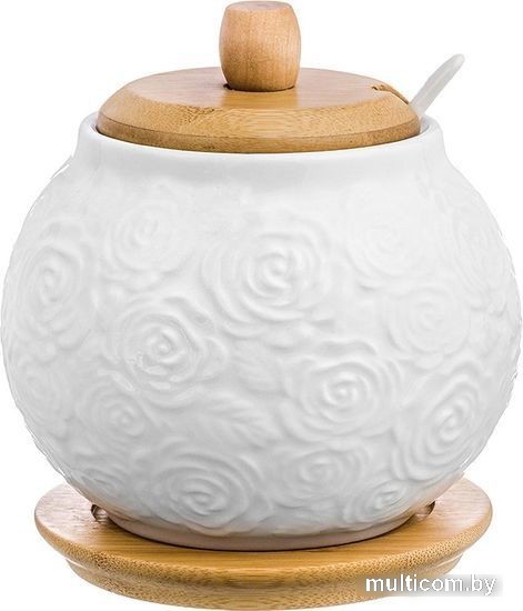 | Информация | Сахарница из серии «Розы» объемом 620 мл с деревянной крышкой, фарфоровой ложкой и деревянной подставкой выполнена из высококачественного фарфора и натурального бамбука. Приятное цветовое решение, рельефный рисунок на фарфоре и удобство использования делают эту сахарницу желанным подарком любой хозяйке. В серии фарфоровой посуды с использованием бамбука представлен широкий ассортимент товаров для сервировки стола, которые, несомненно, впишутся в любой интерьер благодаря лаконичному дизайну, натуральным материалам и высокой функциональности. |