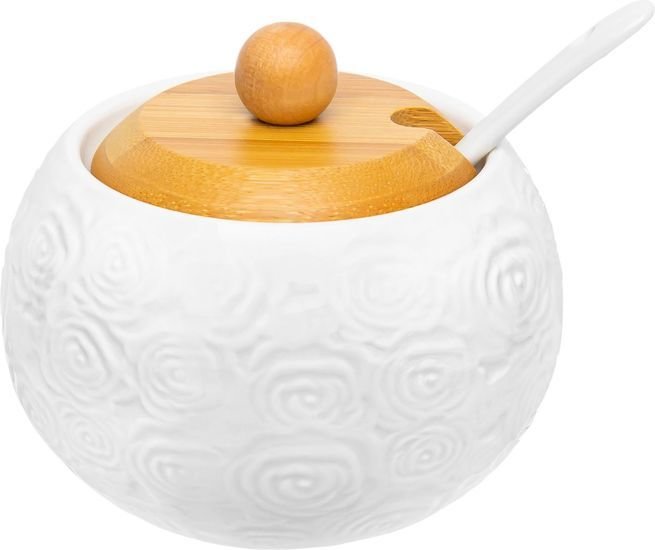 | Информация | Банка для хранения на 300 мл поможет удобно организовать хранение приправ, чая, кофе и самых разных сыпучих продуктов, круп и специй. Можно использовать как сахарницу и сервировать к столу сахар, мед, варенье, джем. Баночка выполнена из высококачественного белого фарфора и украшена декоративными рельефными узорами. Имеет бамбуковую крышку и фарфоровую ложку. Фарфоровая посуда отличается от керамики повышенной плотностью. Фарфор не впитывает цвет продуктов и не деформируется от влаги, чему может быть подвержена керамическая посуда. Банку без крышки можно использовать в СВЧ и ПММ. Крышку из бамбука нельзя замачивать. Набор поставляется в стильной картонной упаковке. Банка сможет стать настоящим украшением кухни и дома или приятным подарком для родных и близких! |