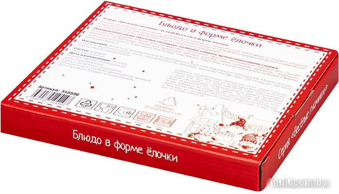 | Информация | ? Блюдо-елочка из высококачественного фарфора ? Имеет яркие изображения гномиков ? Подходит для использования в микроволновой печи и посудомоечной машине ? Поставляется в стильной картонной упаковке ? Может стать украшением кухни или приятным подарком |