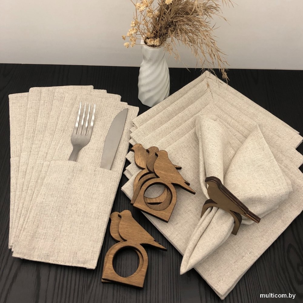 | Информация | - Уникальный набор на 6 персон из тканевых салфеток с кольцами в форме птички и конвертов для столовых приборов станет идеальным решением для сервировки вашего стола. В комплект входят 6 квадратных текстильных салфеток (30?30 см), 6 деревянных держателей и 6 льняных конвертов (21?9 см) с двумя отделениями. Этот набор добавит особый шарм вашим обеденным посиделкам и украсит любой интерьер. - Тканевые салфетки и конверты изготовлены из высококачественной ткани, в состав которой входит белорусский лен (30%) и хлопок (70%). Такое сочетание обеспечивает прочность и мягкость, а также легкость в уходе. Они приятно ощущаются на ощупь и сохраняют свою красоту на протяжении долгого времени. Кольца для салфеток выполнены из березовой фанеры толщиной 6 мм, что гарантирует их долговечность и защиту от влаги благодаря натуральному льняному маслу. - Сервировочные кольца гладкие и легко надеваются на салфетки благодаря внутреннему диаметру в 3 см. Этот набор идеально подходит как для торжественных случаев, так и для повседневного использования. Подарочный комплект тряпичных салфеток с кольцами и конвертами станет отличным выбором для различных праздников, включая Рождество, Новый год и Пасху, когда важно создать атмосферу уюта и внимания к деталям. - Создайте неповторимый праздничный декор с помощью этого красивого набора, который не только украсит ваш стол, но и порадует вас своей функциональностью. Не упустите возможность сделать ваш обеденный стол более стильным и уютным! |