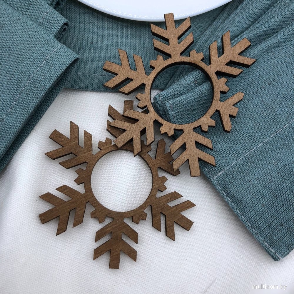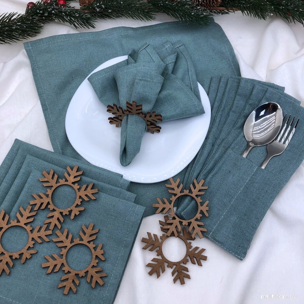 | Состав набора | 6 квадратных текстильных салфеток, 6 деревянных держателей в форме снежинки, 6 конвертов из льняной ткани |