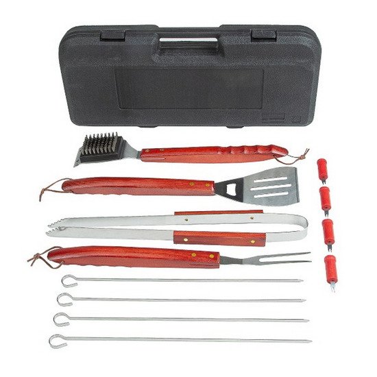| Состав набора | лопатка для гриля (47,5х9 см); щипцы для гриля (46х6 см); вилка для гриля (45,5х4 см); щетка для гриля (45,5х6 см); шампуры (36,5х0,5 см – 4 штуки); вилка для кукурузы (7х2 см – 4 штуки); пластиковый чемодан |