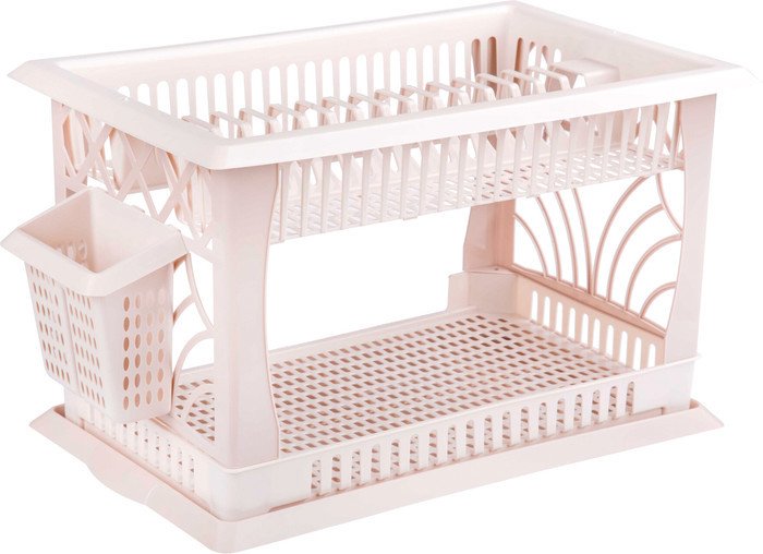 | Информация | Изделие предназначено для сушки кухонной утвари. Верхний ярус позволяет размещать тарелки, а нижний ярус – чашки или другую глубокую посуду. На боковой стойке, соединяющей два яруса, располагается специальный карман для сушки столовых приборов. Поддон позволяет собрать стекающие капли и защитить поверхность стола от влаги. |