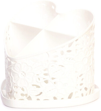 Информация | Оригинальная подставка под столовые приборы в виде сердца идеально дополнит интерьер Вашей кухни. Пять отделений подставки вместят достаточное количество ложек, вилок, ножей и прочих кухонных принадлежностей. Поддон позволит собрать оставшиеся капли. Перфорированные стенки изделия дают воздуху циркулировать, препятствуя распространению бактерий. Подставка «Сердце» также отлично подходит для организации рабочего пространства на столе. Канцелярские принадлежности, карандаши и фломастеры можно хранить в одном месте, не теряя из виду. |