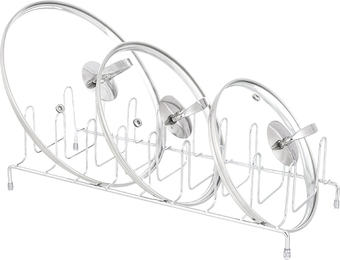 | Информация | Металлический держатель-подставка для крышек позволит хранить посуду в порядке. Выполнен из качественных материалов. Держатель умещает до 8 крышек и организует хранение посуды. Подходит даже для крышек диаметром 32 см. Расстояние между секциями 4 см. Экономит место и хорошо смотрится. |