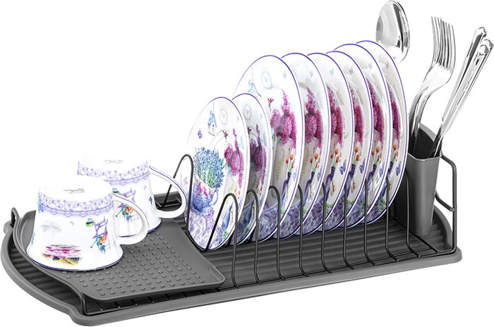 | Информация | ушилка для посуды 47,5х26,5х11 см поможет навести порядок на вашей кухне. Набор имеет отделение для тарелок, отделение для столовых приборов и ровную поверхность для кружек или салатников. Посудосушитель выполнен из металла и пластика. Имеет пластиковый поддон для стока воды. На сушилке удобно размещать тарелки, кружки, стаканы, бокалы, ложки, вилки и другие столовые приборы. После использования сушилку можно убрать. Пластмассовый поддон можно использовать отдельно как поднос. Настольная подставка для сушки посуды станет удобным дополнением вашего дома! |