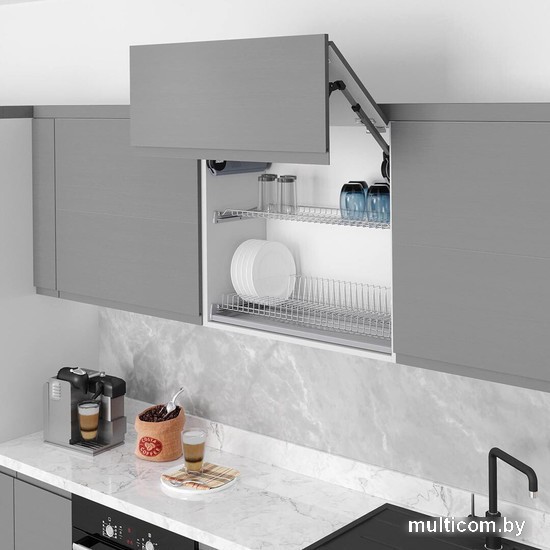 | Информация | Посудосушитель — это неотъемлемая часть кухонного гарнитура, предназначенный для хранения тарелок и чашек. Он имеет решетчатую конструкцию для обеспечения хорошей вентиляции и беспрепятственного стекания капель воды. Устанавливается в верхний шкаф кухонного гарнитура. Комплектация:решетка фигурная для тарелок — 1 шт.; решетка прямая для чашек — 1 шт.; пластиковое крепление — 4 шт.; алюминиевый профиль — 2 шт.; прозрачный пластиковый поддон — 1 шт. |