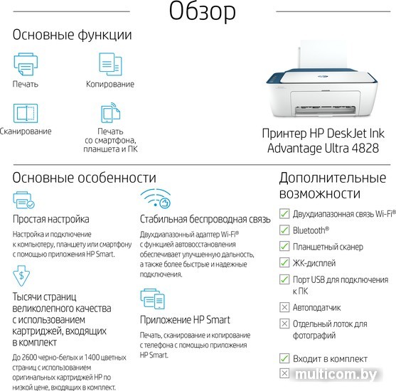 | Печать с мобильных устройств | Да (Apple AirPrint, Mopria Print Service, HP Smart) |