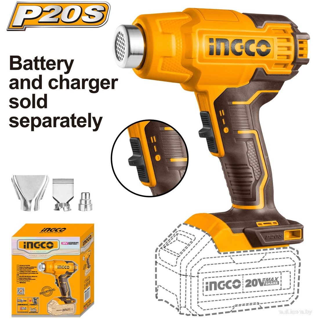 | Информация | - Фен аккумуляторный INGCO HGLI2002 INDUSTRIAL 20 В применяется для нагрева поверхностей или термоусадочных трубок, удаления лакокрасочных поверхностей и других материалов с различных поверхностей, пайки мягким припоем, пайки пластика, деформации плексигласа. - В комплекте с инструментом аккумулятор не поставляется, что позволяет выбрать аккумулятор емкостью 2,0/4,0/5,0 Ач под ваши задачи и время работы. |