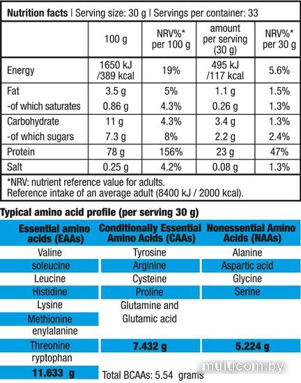 Информация | Смесь сывороточного и соевого протеинов в форме порошка с добавлением L-глутамина и BCAA |