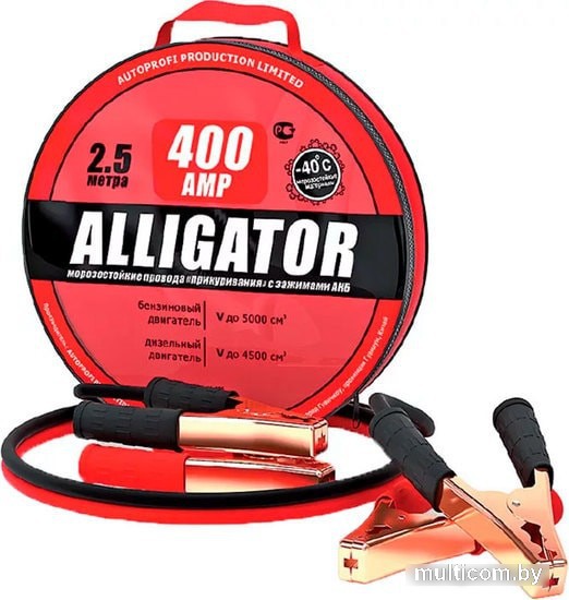 | Информация | Многожильные провода изготовлены из алюминия с медным напылением и покрыты изоляцией из морозостойкого термопласта. Термопласт легко гнётся и не теряет свою эластичность до температуры -40 °С. Рукоятки зажимов изолированы термопластом, что делает более удобным эксплуатацию проводов «прикуривания» в сильные морозы.Надёжный и практичный аксессуар – комплект проводов «прикуривания» BC-400 из классической серии «Alligator». Провода обладают длиной 2,5 метра и пропускают ток силой до 400 ампер. Это позволяет использовать их для запуска автомобилей, оснащённых бензиновыми двигателями объёмом до 5 литров или дизельными – объёмом до 4,5 литров. |