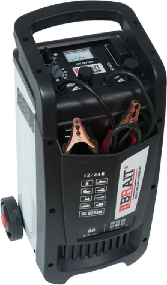 | Информация | Пуско-зарядное устройство BRAIT BC-630SM служит для зарядки аккумуляторов со свободным электролитом напряжением 12/24 В и для быстрого пуска всех типов легковых автомобилей, микроавтобусов, легких грузовых автомобилей, мотоциклов и др. Можно использовать везде, где применяются свинцово-кислотные аккумуляторы, которые до сих пор остаются самыми надежными, долговечными и не очень затратными химическими источниками тока. BRAIT BC-630SM имеет защиту от перегрузок и ошибки полярности, индикатор тока зарядки и пуска; может работать в режимах: - нормальная зарядка; - быстрая зарядка; - пуск. |