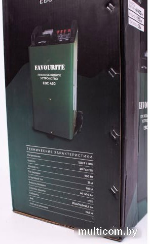 | Информация | ? Пуско-зарядное устройство FAVOURITE EBC 450 идеально подходит для использования в профессиональных автомастерских, станциях технического обслуживания и автопарках крупных предприятий. ? Модель способна заряжать свинцово-кислотные АКБ на 12 и 24 В, что делает ее универсальным инструментом для поддержания заряда различных типов аккумуляторов. ? Корпус устройства оснащен двумя крупными колесами для удобной транспортировки и широкой опорной ножкой для стабильного положения. |