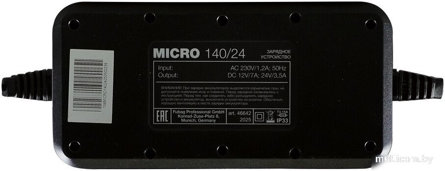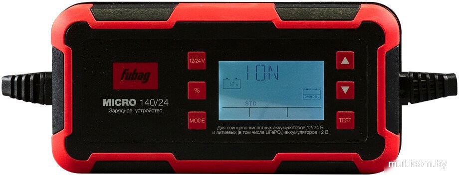 | Информация | Зарядное устройство FUBAG Micro 140/24 — это инновационное решение для зарядки различных типов батарей. Оно идеально подходит для свинцово-кислотных аккумуляторов на 12 и 24В, а также для литиевых батарей на 12В, включая LiFePO4. Это устройство способно заряжать аккумуляторы с емкостью до 230Ач, что делает его идеальным выбором для легковых и грузовых автомобилей, мотоциклов, автобусов, а также яхт и снегоходов. С 8-и ступенчатой программой зарядки зарядное устройство FUBAG Micro 140/24 проводит диагностику состояния батареи перед началом зарядного цикла и может восстанавливать сульфатизированные аккумуляторы. Это делает его отличным выбором для пользователей, стремящихся продлить срок службы своих батарей. Вы можете заказать зарядное устройство FUBAG Micro 140/24 с доставкой в Москве. Преимущества зарядного устройства FUBAG Micro 140/24 Интеллектуальная программа зарядки с 8 ступенями, обеспечивающая полный автоматический цикл; Поддержка различных типов свинцово-кислотных и литиевых аккумуляторов (WET/MF/EFB/GEL/AGM на 12/24В, LiFePO4 на 12В); Информативный LCD-дисплей для отображения режима работы и параметров; Класс защиты IP 33 обеспечивает безопасность использования; Компактные размеры и легкий вес для удобства хранения и транспортировки; Кабель и зажимы в комплекте для немедленной работы. |