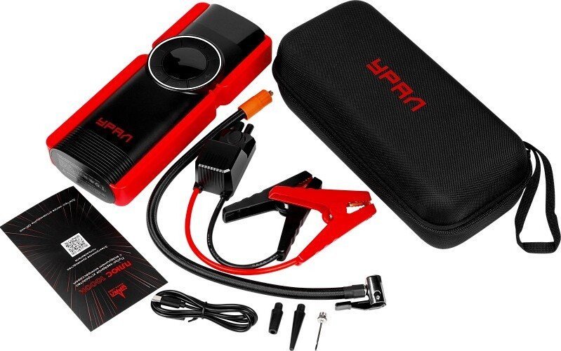 | Информация | Многофункциональное портативное пуско-зарядное устройство, предназначенное для автомобильного и общего использования. Оснащено аккумулятором высокой емкости, способным выдавать достаточный ток для запуска двигателей транспортных средств, включая легковые автомобили, грузовики и мотоциклы. Имеет встроенный светодиодный фонарик для освещения в условиях низкой освещенности. Есть компрессор для накачивания шин с регулируемым давлением. Кроме того, поддерживает зарядку внешних электронных устройств (например, смартфонов, планшетов) через USB или другие стандартные интерфейсы и может отдавать ток для питания совместимого оборудования. Устройство компактно, легко и предназначено для безопасной и надежной работы в различных условиях окружающей среды. |