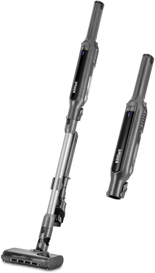 | Информация | - Заряжаюсь и убираюсь!  Беспроводной вертикальный пылесос КТ-5297 компактен и всегда готов к работе. Благодаря работе от аккумулятора не нужно включать его в розетку, провода не мешают под ногами. Пылесос имеет неограниченный радиус действия: от любого уголка квартиры до машины. - Не займёт много места! У пылесоса нет функции вертикальной парковки, поэтому его рекомендуется устанавливать на базу из комплекта, которая крепится к стене. База служит для зарядки и хранения пылесоса. Для небольших квартир, приобретение этой модели будет оптимальным вариантом. - Ручной модуль с насадками Конструкция «2 в 1» предусматривает наличие ручного пылесоса. Ручным пылесосом можно убрать в углах, обивку мебели или в авто. Щелевая насадка позволит добраться до самых узких мест, а «2 в 1» может использоваться для чистки ковров или твёрдых покрытий. - Простота управления Кнопка «Вкл/Выкл» включает и выключает пылесос. Кнопки «+» и «-» переключает уровни мощности, всего у пылесоса их 2. Индикаторы заряда показывают уровень заряда аккумулятора: если горят все 3 индикатора заряда — аккумулятор полностью заряжен. - Выдвижная щётка На моторном блоке пылесоса может заменить ворсовую щётку насадки «2 в 1». Для быстрой уборки небольших участков вы можете не устанавливать насадку «2 в 1», а просто выдвинуть щётку. - Понятная конструкция Корпус пылесоса хранит в себе: аккумулятор, фильтры тонкой и грубой очистки и пылесборник, ёмкостью 0,15 л. Аккумулятор съёмный, но зарядить его можно, только если он установлен в моторный блок, а моторный блок установлен на базу для зарядки. - Подсвечу каждую пылинку! Пылесос комплектуется напольной насадкой с турбощёткой, которая помогает с очисткой гладких поверхностей и ковровых покрытий с не длинным ворсом. Подсветка пыли сделает уборку ещё более качественной. Для извлечения турбощётки нужно сдвинуть фиксатор.  |