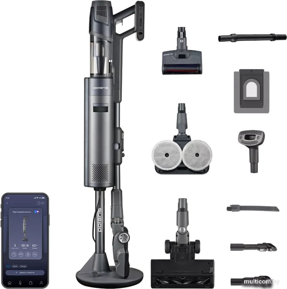 | Информация | Вертикальный экстремально мощный пылесос с пыленакопителем и функцией самоочистки PVCSDC 3000 Wi-Fi IQ Home станет незаменимым помощником при уборке в доме и не только. Устройство оснащено аккумулятором емкостью 3950 мАч, что обеспечивает до 85 минут автономной работы на одном заряде. Ручной пылесос с мощностью мотора в 800 Вт и мощностью всасывания в рекордные 280 аВт эффективно удаляет пыль, волосы, шерсть животных и другой мусор с различных покрытий, включая ковры, паркет, плитку и ламинат. Для разных типов загрязнений предусмотрены четыре режима мощности: авто, эко, турбо и макс. Мощный аппарат предназначен для сухой и влажной уборки. В комплекте есть зарядная база с пыленакопителем 3 л, обеспечивающая удобное хранение прибора и доп. насадок, его зарядку и самоочистку. В набор входят 6 дополнительных насадок: мини-турбощетка для мебели с УФ-излучением, насадка 2в1, насадка для мебели, щелевая насадка с LED подсветкой, моторизированная швабра, электрощетка с LED подсветкой, гибкий шланг и насадка для животных, 3 шт сменных мешков. Все это позволяет чистить не только полы, но и мебель, диван, ковры, шторы, а также поддерживать чистоту в салоне автомобиля. Универсальный аккумуляторный пылесос также оснащен LED дисплеем с удобным индикатором заряда, чтобы вы всегда знали, когда устройство нуждается в подзарядке. Уровень шума составляет всего 84 дБ. Циклоническая система сбора пыли с HEPA фильтром улавливает до 99,5% частиц пыли и аллергенов, улучшая качество воздуха в вашей квартире. Встроенная подсветка обеспечит дополнительное освещение зоны работы и поможет эффективнее производить очистку пола от загрязнений. |
