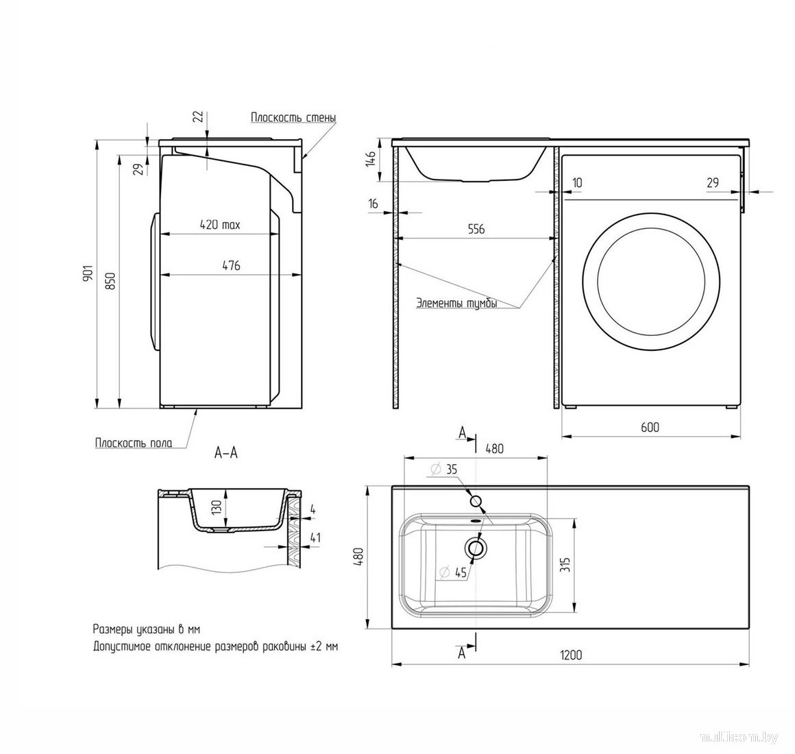 | Информация | - Умывальник-столешница — идеальный выбор для современных ванных комнат, особенно в ограниченных пространствах. Удобное размещение над стиральной машиной с частичным расположением на тумбе помогает эффективно использовать каждый сантиметр. - Вместительная столешница предоставляет достаточно места для размещения средств гигиены и стильных аксессуаров, что делает вашу ванную комнату более функциональной и эстетичной. - Максимальная глубина стиральной машины составляет 420 мм, что позволяет легко интегрировать умывальник в интерьер, не жертвуя комфортом. - Этот умывальник-столешница станет отличным решением для тех, кто ценит практичность и стиль в своем доме. |