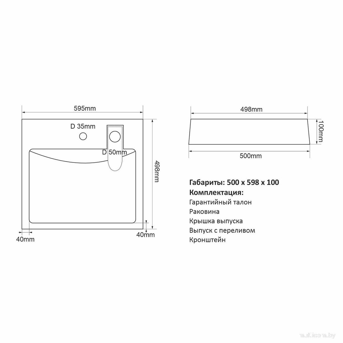 | Глубина | 50 см |