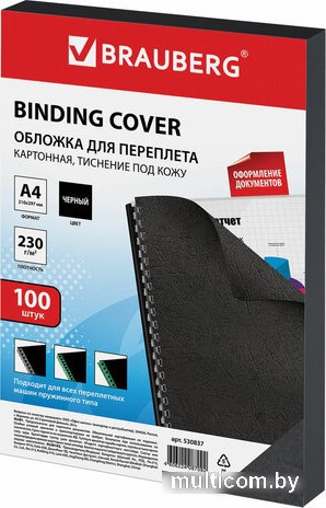 | Информация | Обложки для переплета BRAUBERG придадут документам эстетичный внешний вид и защитят от повреждений. Предназначены для переплета документов брошюровщиком с помощью пластиковых и металлических пружин. Актуальны для создания деловых брошюр. Выполнены из прочного, износостойкого картона черного цвета плотностью 230 г/м2. Тиснение под кожу. Подходят для документов формата А4. 100 штук в комплекте. |