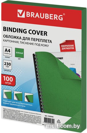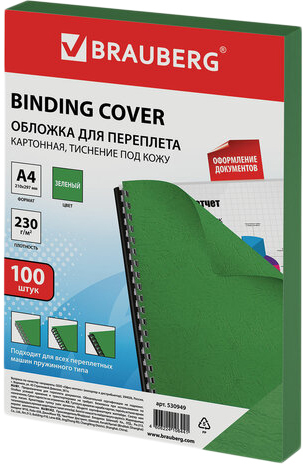 | Информация | Обложки для переплета BRAUBERG придадут документам эстетичный внешний вид и защитят от повреждений. Предназначены для переплета документов брошюровщиком с помощью пластиковых и металлических пружин. Актуальны для создания деловых брошюр. Выполнены из прочного, износостойкого картона зеленого цвета и плотностью 230 г/м2. Тиснение под кожу. Подходят для документов формата А4. 100 штук в комплекте. |