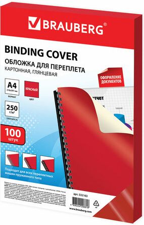 | Информация | Обложки для переплета BRAUBERG придадут документам эстетичный внешний вид и защитят от повреждений. Предназначены для переплета документов брошюровщиком с помощью пластиковых и металлических пружин. Актуальны для создания деловых брошюр. Выполнены из прочного, износостойкого картона красного цвета плотностью 250 г/м2. Имеют глянцевую текстуру. Подходят для документов формата А4. 100 штук в комплекте. |