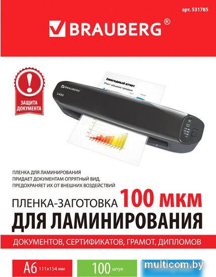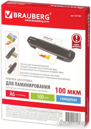 | Информация | Пленка для ламинирования BRAUBERG надежно защитит документы от влаги, пыли, воздействия УФ-лучей и других внешних факторов. Представляет собой двойной пакет, спаянный с одной стороны (содержание полиэстера 50%). Документ вкладывается между слоями пленки и в дальнейшем подвергается термообработке в ламинаторе. Суммарная толщина пленки-заготовки — 200 (100х2) мкм, что позволяет защитить документы и увеличить жесткость, сохраняя яркость изображения. Пленка для ламинирования BRAUBERG формата A6 (111х154 мм) имеет уникальный состав: полиэтилентерефталат (PET), этиленвинилацетат (EVA), полиэтилен (LDPE). Промежуточный слой полиэтилена (LDPE) выступает как связующий элемент между слоями PET и EVA, служит дополнительной защитой от вероятного вытекания клея из-под пленки при ламинировании. Полиэтилен (PE) придает пакетам прочность эластичность и износостойкость. Глянцевое покрытие пленки способствует сохранению и максимальной передаче цвета ламинируемого изображения. Поставляется в картонной упаковке по 100 штук, которых при нечастом использовании хватает на продолжительное время. |