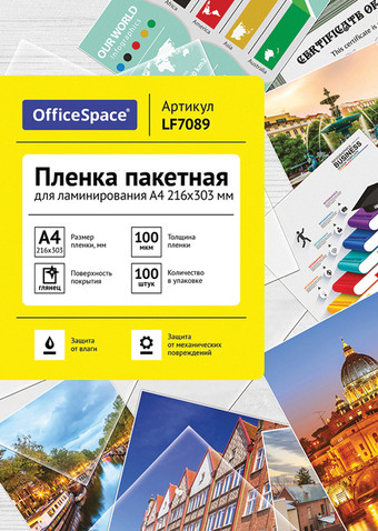 OfficeSpace А4 100 мкм 100 шт LF7089 (глянцевый, прозрачный)
