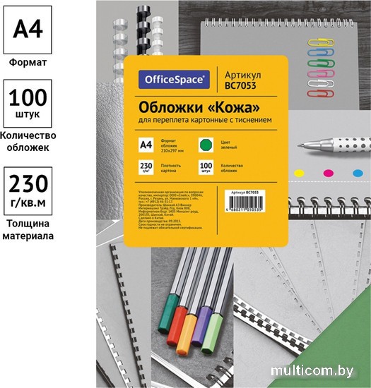 | Информация | Обложка для переплета предназначена для оформления документов. Выполнена из картона зелёного цвета с тиснением под кожу. Идеально подходит как для переплета на пластиковую, так и на металлическую пружины. |