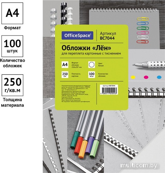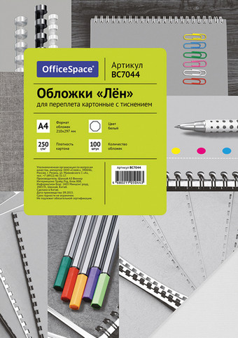 | Информация | Обложка для переплета предназначена для оформления документов. Выполнена из картона белого цвета с тиснением под лён. Идеально подходит как для переплета на пластиковую, так и на металлическую пружины. |