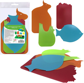 | Информация | Как удобно, когда для каждого вида продуктов существует своя разделочная доска! С набором гибких разделочных досок вы не перепутаете, что на какой резать. Все очень просто, каждая доска-коврик имеет уникальный дизайн.синяя - для рыбы, имеет форму рыбки (размер 32х21см);_x000D_ оранжевая - для говядины и другого красного мяса (38х22см);_x000D_ зеленая - для разделки птицы (21х29см);_x000D_ красная - с очертаниями зелени, идеальна для овощей._x000D_ Главная цель использования нескольких досок – обеспечить безопасность приготовления пищи, а именно:предотвратить распространения инфекции;_x000D_ исключить контакт сырых и готовых продуктов;_x000D_ предотвратить смешения запахов и вкусов разных продуктов._x000D_ Гибкие по структуре – доски позволяют аккуратно ссыпать содержимое в кастрюли и сковороды. После использования тщательно промойте губкой с моющим средством и просушите. Изготовлено из пластмассы (полипропилен). |