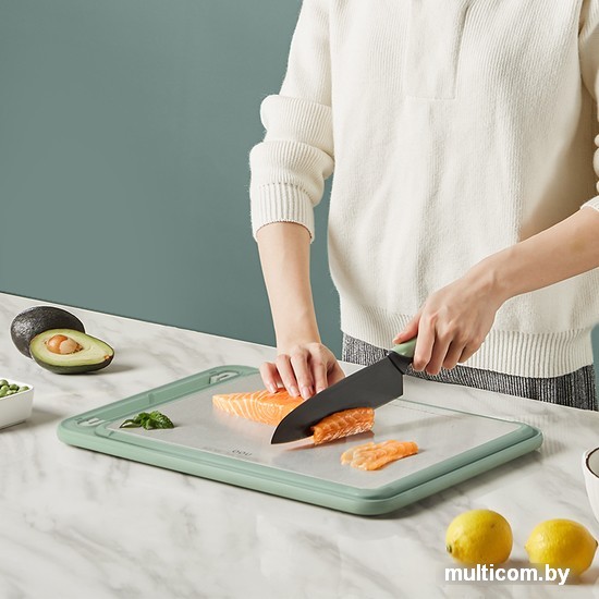 | Информация | Инновационная доска со встроенной керамической точилкой и антибактериальным покрытием. Позволяет затачивать ножи перед разделкой продуктов.Нескользящий прорезиненный край доски обеспечивает устойчивость как при нарезке продуктов, так и при заточке лезвия.Поверхность доски изготовлена из специального материала, защищающего целостность ваших ножей и минимизирующего затупление.Можно мыть в посудомоечной машине. Разделочная доска не содержит BPA, а ее материал безопасен для окружающей среды и является абсолютно безопасным для повседневного использования. Доска толще и больше, чем подавляющее большинство продуктов на рынке, и может широко использоваться для выполнения любых сложных работ, таких как нарезка, рубка.Помимо режущей поверхности, в углу доски также есть терка для чеснока, которая сохранит остроту ножа. Одна поверхность выполнена из антибактериальной нержавеющей сталь, на которую нанесена линейная градуировка для удобства нарезки порционных кусочков. прочная и долговечная; высокие гигиенические показатели; можно использовать с обеих сторон; нож не затупляется при использовании; можно применять в качестве подноса или подставки для блюд. |