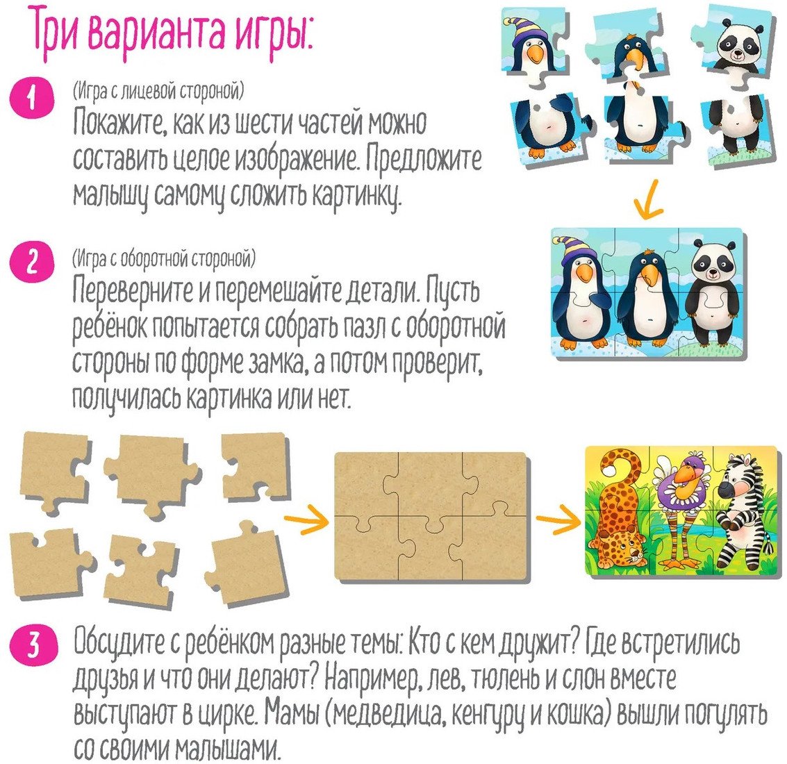 | Информация | - Развивающая игра Айрис-пресс IQ деревянный Верные друзья 4+ 9785811284580 выполнена из экологически чистых материалов, что делает их прочными и долговечными. - Размер крупных деталей идеально подходит для эргономики детской руки. - В наборе 6 ярких изображений забавных животных, каждая картинка складывается из шести частей, всего в коробочке 36 деталей. - Занятие с пазлами способствует развитию мелкой моторики, восприятия, внимания и пространственного мышления. - «Шпаргалка» для родителей включает задания для запуска и активизации речи ребенка. - Подходит для детей от 4 лет. |