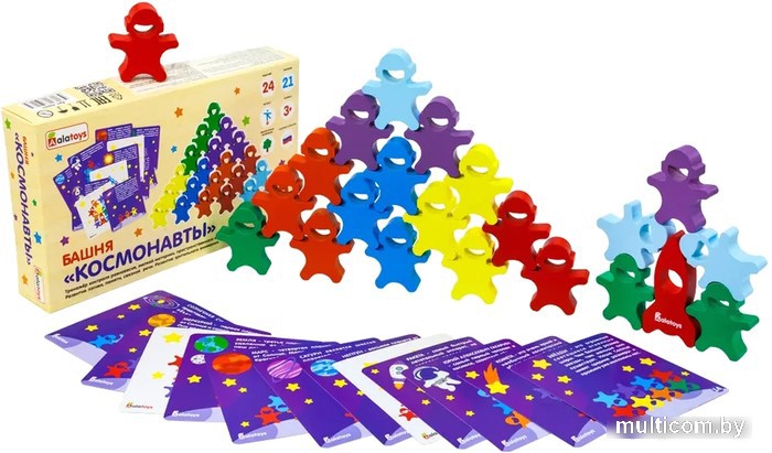 | Комплектация | 24 карточки с заданиями, 21 фигурка в виде разноцветных космонавтов |