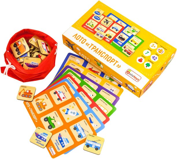 | Информация | Детское лото "Транспорт" – настольная игра, неизменно вызывающая интерес у детей. Ведущий извлекает из специального мешочка, одну фишку за другой. Участники должны закрывать совпавшие картинки на своем поле. Побеждает первый закрывший все рисунки. Кроме этого наземный можно разделить на: |